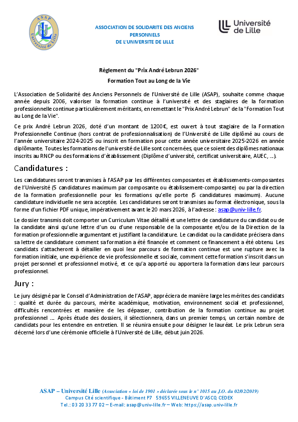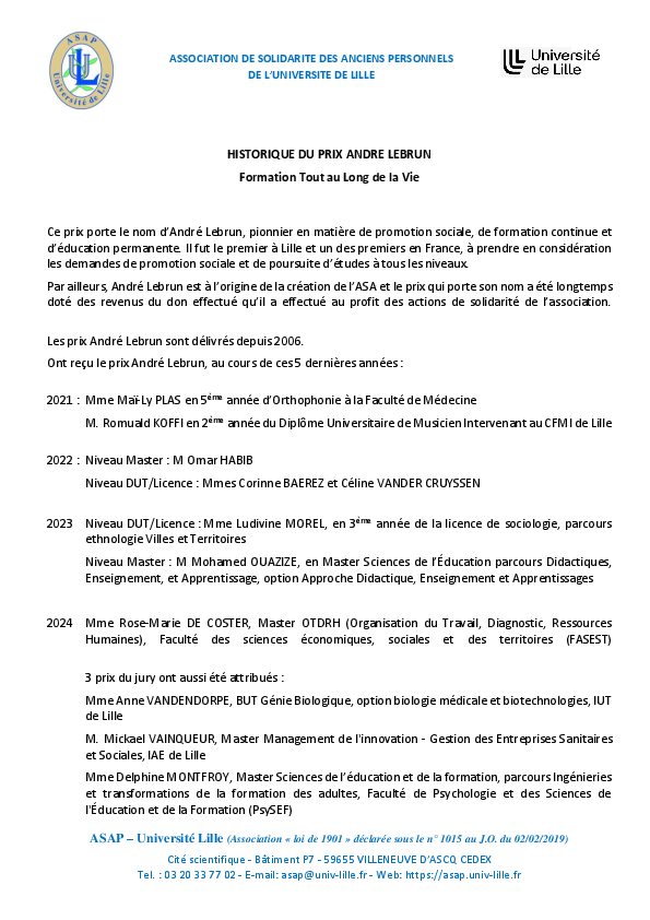 - Madame Lison COURDAIN, titulaire de la capacité en droit et du DU pratique du contrat de travail, à la FSJPS (Faculté des Sciences Juridiques, Politiques et Sociales).